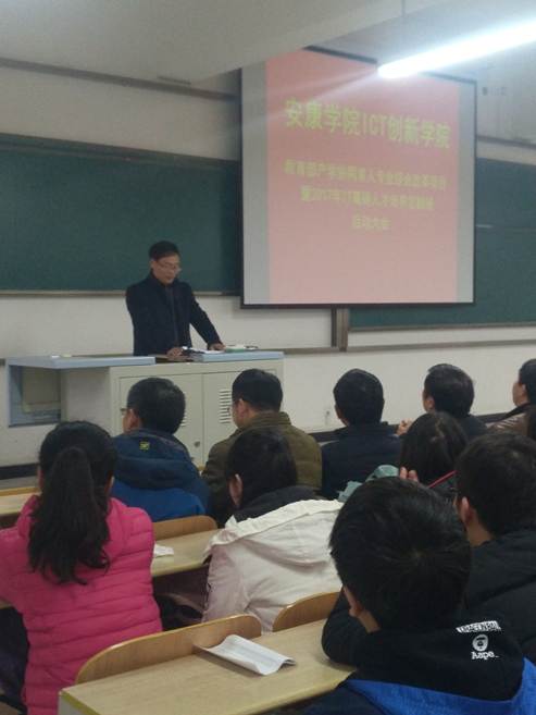 2017年11月29日下午,Beat365中文官方网站ICT创新学院暨2017年IT高端人才培养定制班启动仪式在1305教室举行。会议由Beat365中文官方网站副院长陈守满主持。党总支书记何道利、各系主任及15级全体学生参加。
