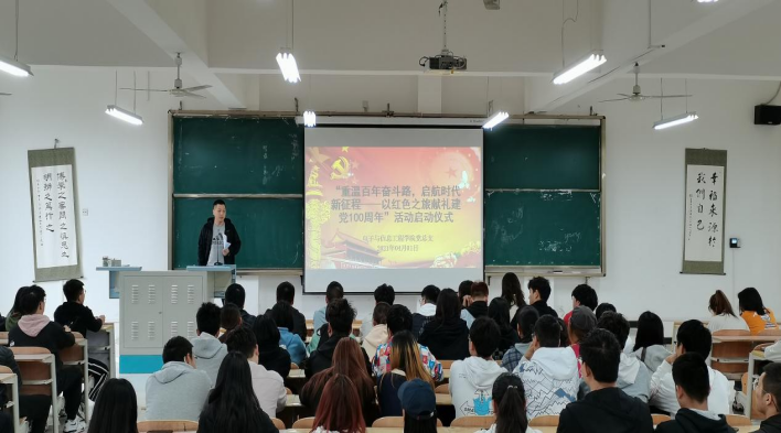 2021年4月1日下午16:00,Beat365中文官方网站在教学1201教室举办了“重温百年奋斗路,启航时代新征程——以红色之旅献礼建党100周年”活动启动仪式。本次活动出席的人员有:学生工作办公室主任石纭昊老师第一党支部书记成英丽老师,第二党支部书记、团总支书记李章雨老师以及全体学生党员,50、51期入党积极分子等学生主要干部