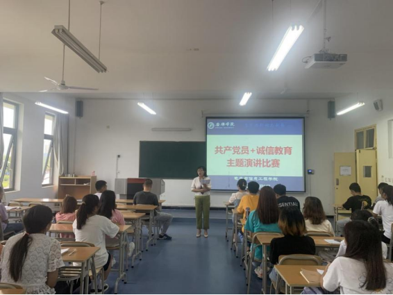 活动开始,学生第一党支部书记成英丽老师讲述了开展此次活动的目的和意义,要求各位中共党员通过此次活动深刻认识诚信做人、诚信做事的重要意义。紧接着,共产党员+诚信教育主题演讲活动开始,学生第一、二党支部全体中共党员有序依次上台,以“诚信”为主题给大家带来精彩演讲,赢得同学们阵阵掌声。
