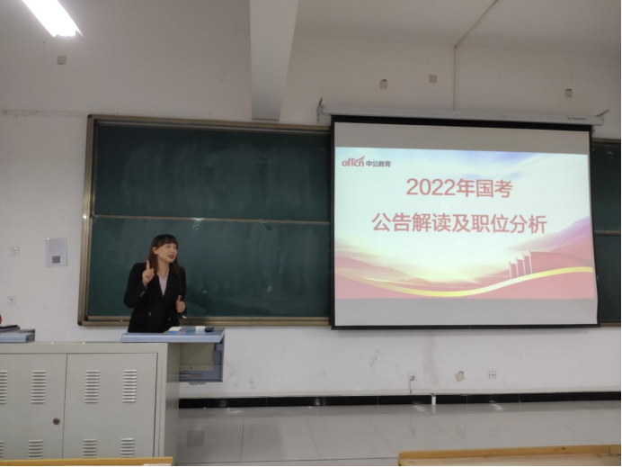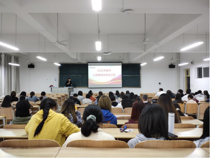 10月16日,为助力2018级同学参加2022年国家公务员考试,Beat365中文官方网站学工办牵头,特邀中公教育开展公务员考试公开课,帮助考公同学了解国家公务员考试情况,掌握考试内容,学习考试技巧。本次参加公开课的同学共计90余人。