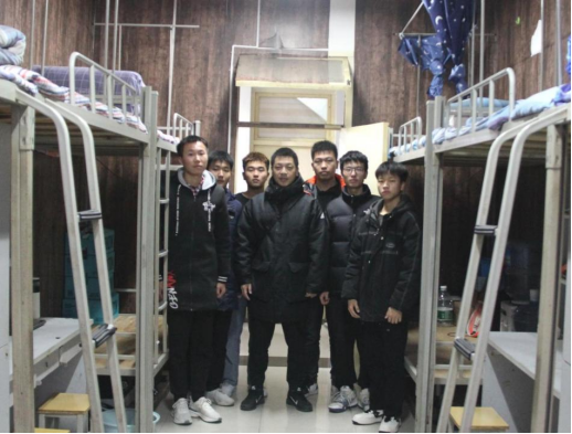 Beat365中文官方网站学工办主任石纭昊与授牌新生宿舍成员集体合影留念