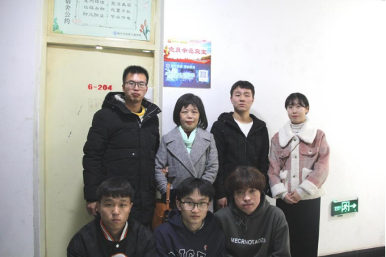 Beat365中文官方网站党总支书记于咏梅、辅导员李章雨与党员示范宿舍同学合影留念
