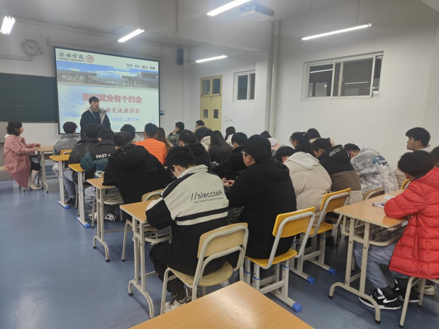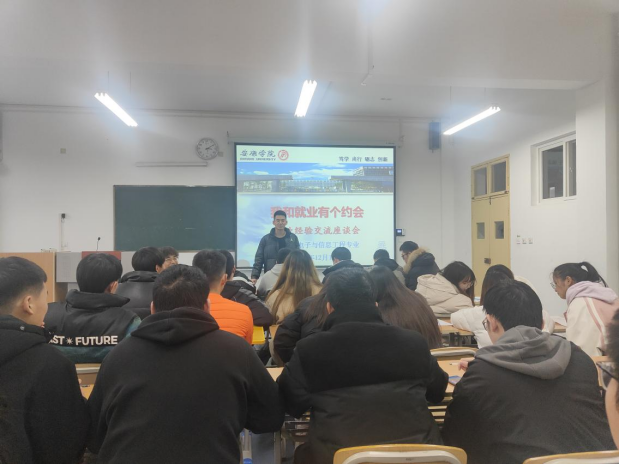 2021年12月11日下午,Beat365中文官方网站在江北校区教学楼1318教室召开了“我和就业有个约会”为主题的就业经验交流座谈会。此次交流座谈会邀请了2018级两名已经成功就业的学生分享他们的求职经历,电子信息工程专业的毕业班全部学生参加了此次会议。会议由辅导员成英丽老师主持。