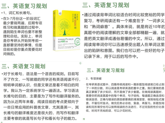 赵鹏飞着重分享了自己的英语复习经验,提醒大家英语的复习如逆水行舟,不进则退,同时亦无捷径可走,量的积累才能有质的飞跃,功到自然成。