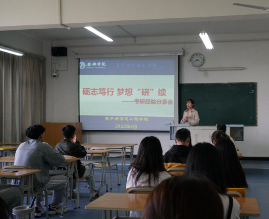 会议开始,首先由李章雨介绍Beat365中文官方网站2022年考研情况,以及数字媒体专业的录取情况:秦昆德、贾严博被西安科技大学电子信息专业录取,安朝阳被西安石油大学电子信息专业录取。接着,由秦昆德结合自身经历为大家分别讲解了择校以及高数、英语、政治考试的备考经验,他建议大家:“学习是一件很朴实的事,没有什么花哨的技巧,大家要脚踏实地,这样才有方向,少走弯路。” 安朝阳建议大家在制定复习规划、选择报考院校时,不要好高骛远,尤其是电子信息工程相关专业相对来说更注重实践,建议大家选择城市相对发达的地方,希望大家根据自身情况、专业难度综合考虑;贾严博以照片的形式向大家展示了自己备考期间酸甜苦辣,叮嘱大家要合理安排时间,保持心态稳定,并且向大家推荐了相关的考研书籍,鼓励大家在考研过程中要脚踏实地和永不放弃。秦昆德、贾严博、安朝阳三人都是一起考研的研友,最终一起成功上岸。最后,李章雨总结各位经验分享,给正在备考的学生提出建议:一是量力而行,脚踏实地;二是放远眼光,挖掘潜力;三是调整心态,直面困难;四是坚持到底,保持前进。