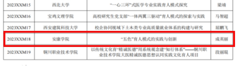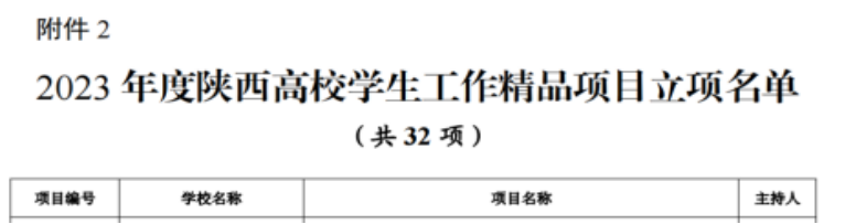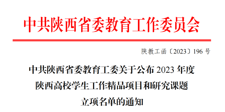 近日,中共陕西省委教育工委公布了2023年度陕西高校学生工作精品项目和研究课题立项名单,Beat365中文官方网站辅导员成英丽副教授主持的《“五色”育人模式的实践与创新》获批陕西高校辅导员工作精品项目立项。该项目组成员有学院党总支书记于咏梅,学工办主任石纭昊,辅导员张宇航、吕以宁和李章雨。