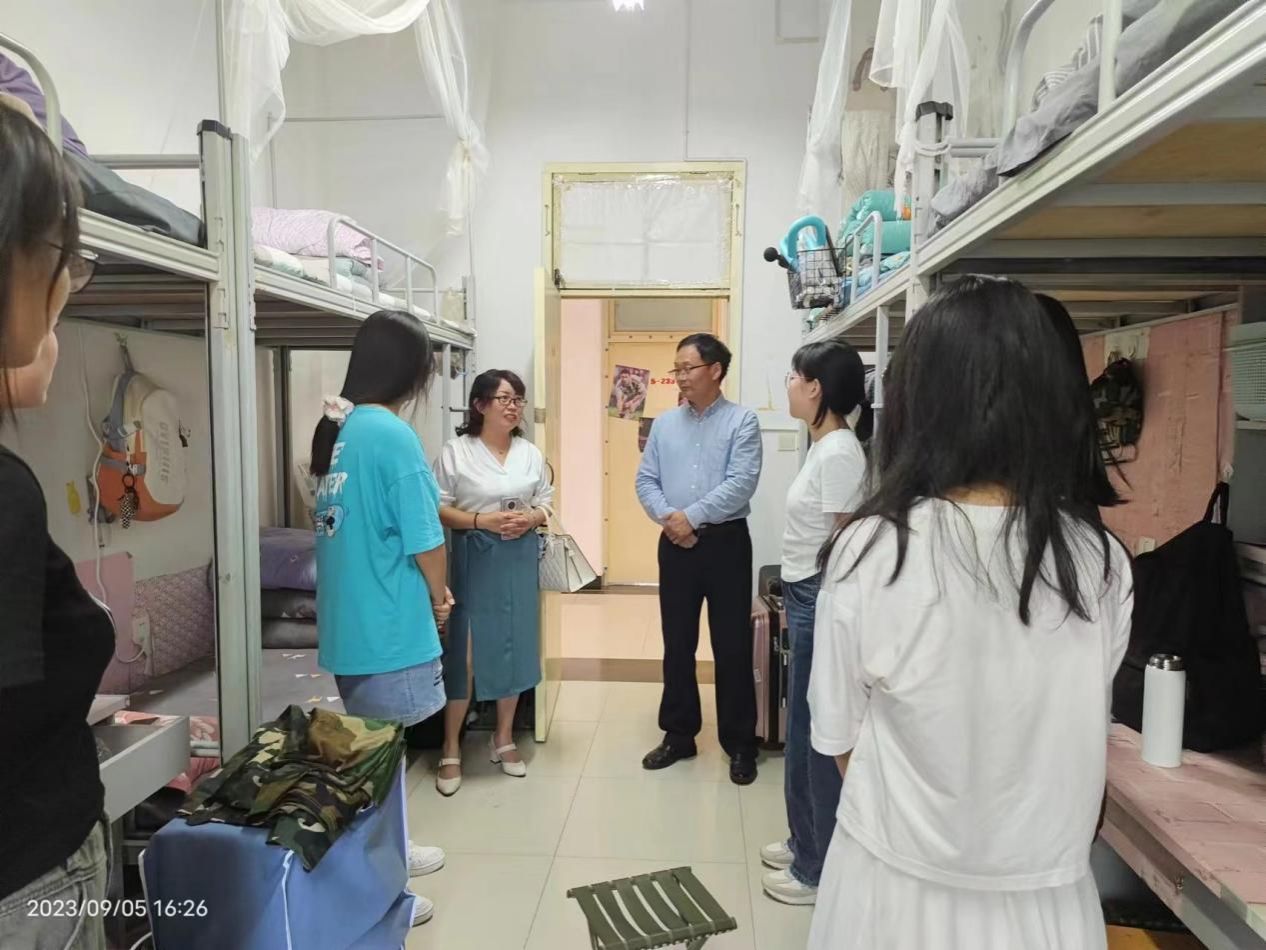 新学期、新征程、新起点、新希望。为推动新学期学生教育管理工作有序开展,进一步加强新生宿舍管理,帮助新生适应大学宿舍环境。9月5日,Beat365中文官方网站院长陈守满,党总支书记于咏梅,副院长王克刚、宋权华,党总支副书记蔡正旺,辅导员成英丽分别走访4、5、6、7号学生公寓,看望Beat365中文官方网站2023级全体新生。