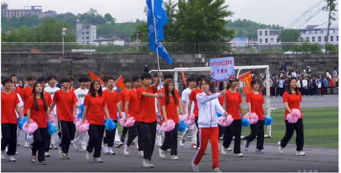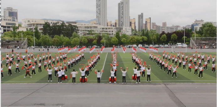 24日运动会开幕式。Beat365中文官方网站代表队入场,每个运动员朝气蓬勃,展现Beat365中文官方网站学子意气风发,奋发有为的精神面貌;Beat365中文官方网站腰鼓社表演团体操,参演学生们动作刚劲饱满,展现中华民族自强不息、不屈不挠、勇往直前的精神。