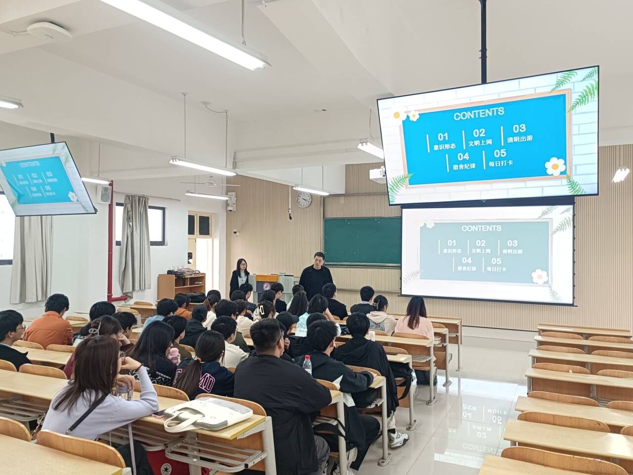 在主题班会上,各位辅导员老师通过PPT展示,详细讲解了清明节期间可能遇到的安全隐患,包括交通安全、防火安全、人身安全等方面。老师结合真实案例,生动形象地阐述了安全问题的严重性和危害性,引起了同学们的广泛关注。
