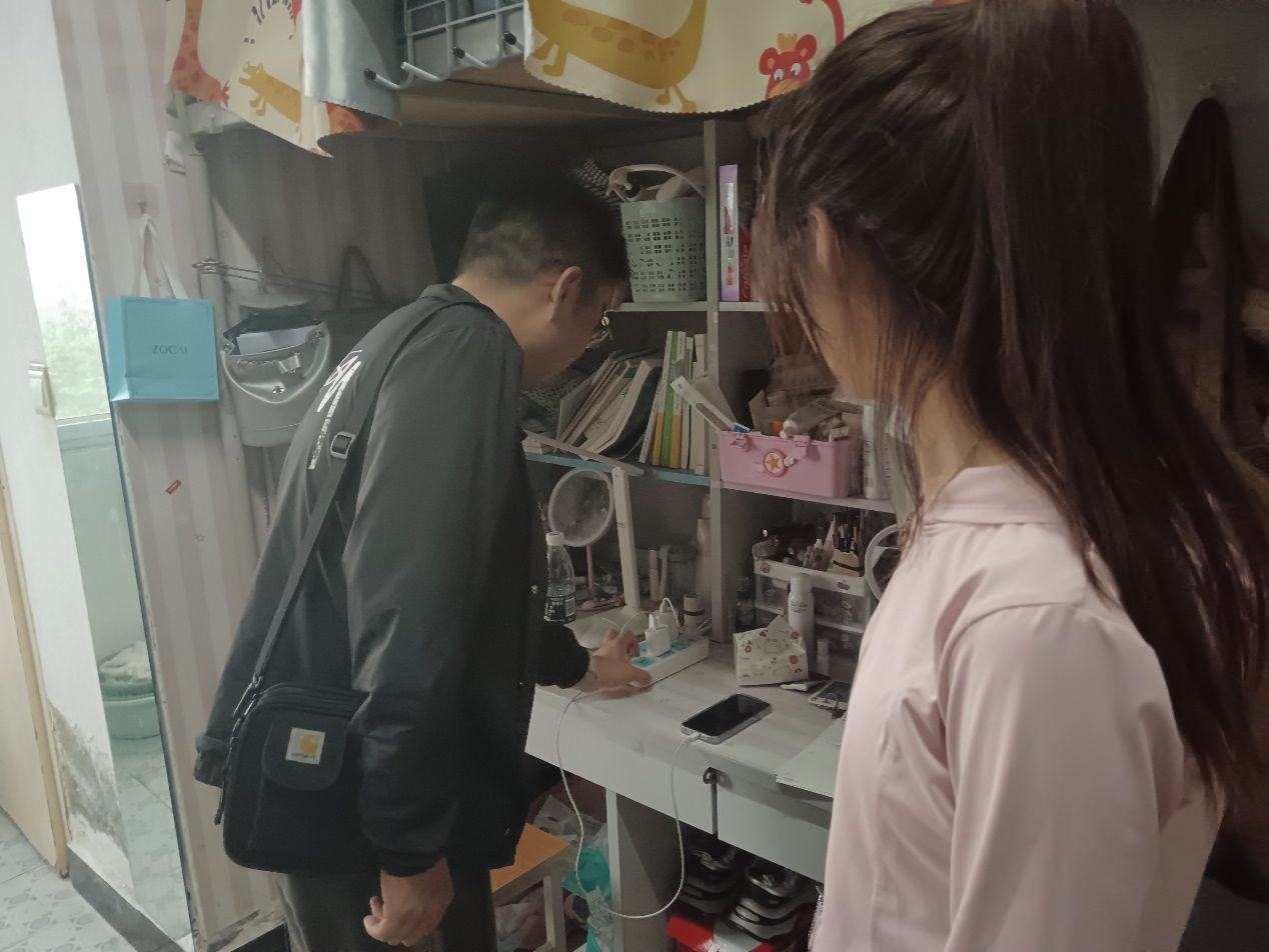 检查过程中,学院领导及辅导员们深入学生宿舍,对宿舍内的用电安全、消防安全、卫生状况及学生在宿舍的学习生活状况等方面进行了详细检查。他们认真查看了学生宿舍的电线布局、电器使用情况,重点检查了是否存在私拉乱接电线、违规使用大功率电器等安全隐患。