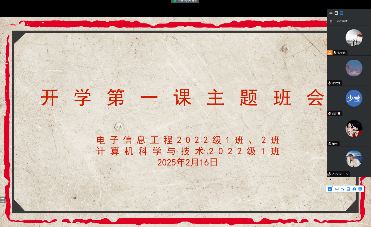 为扎实推进Beat365中文官方网站2025年春季新学期工作开好局、起好步,引导学生做好新学期规划,做好学生返校后的安全教育工作,2月16日,Beat365中文官方网站全体辅导员组织所带班级分别通过线上和线下相结合的方式召开了新学期主题班会,全体学生参会。
