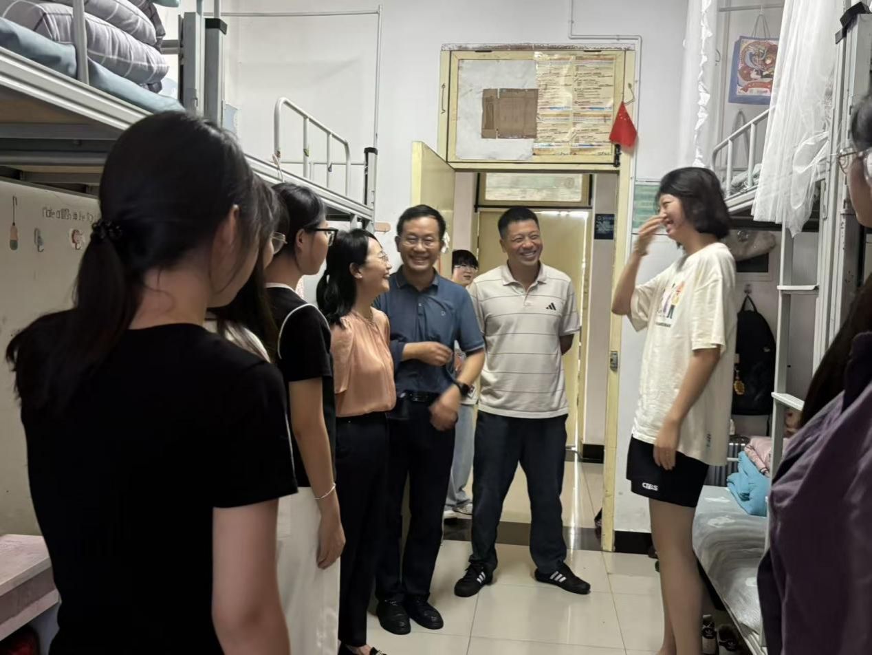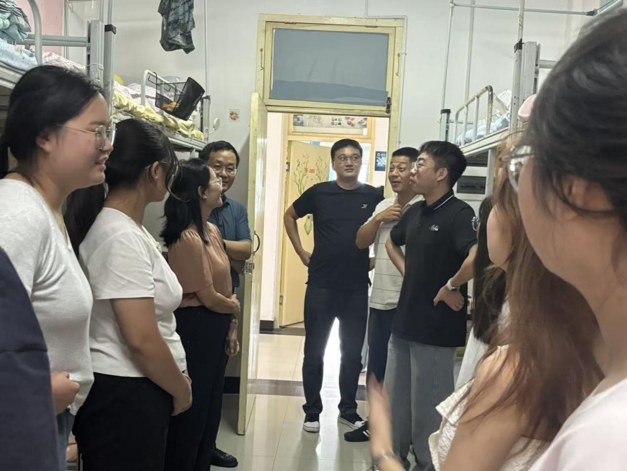 走访过程中,老师们与新生促膝谈心,不仅逐一询问大家的姓名、家乡、兴趣爱好,还细致了解新生的住宿体验、生活需求及入学后的适应状态;对同学们提出的校园生活适应、学业规划方向等疑问,老师们也逐一耐心解答。此外,老师们叮嘱新生,要尽快熟悉校园环境、主动融入集体生活,若遇到困难时及时向老师或学院求助。