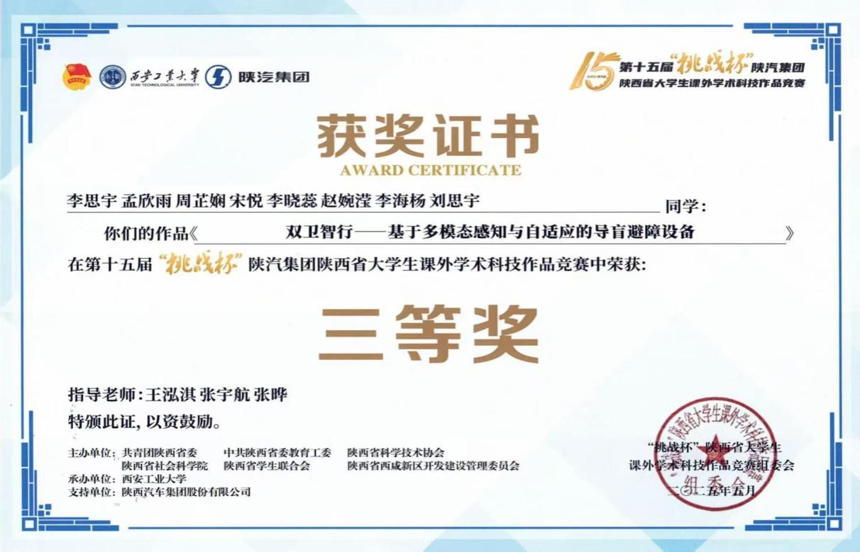 近日,由团省委、省委教育工委、省科协、省社科院、省学联与省西咸新区管委会联合主办、西安工业大学承办的第十五届“挑战杯”陕汽集团陕西省大学生课外学术科技作品竞赛落下帷幕。我院学子在竞赛中表现优异,取得二等奖1项、三等奖2项,展现了深厚的专业功底与卓越的创新实践能力。