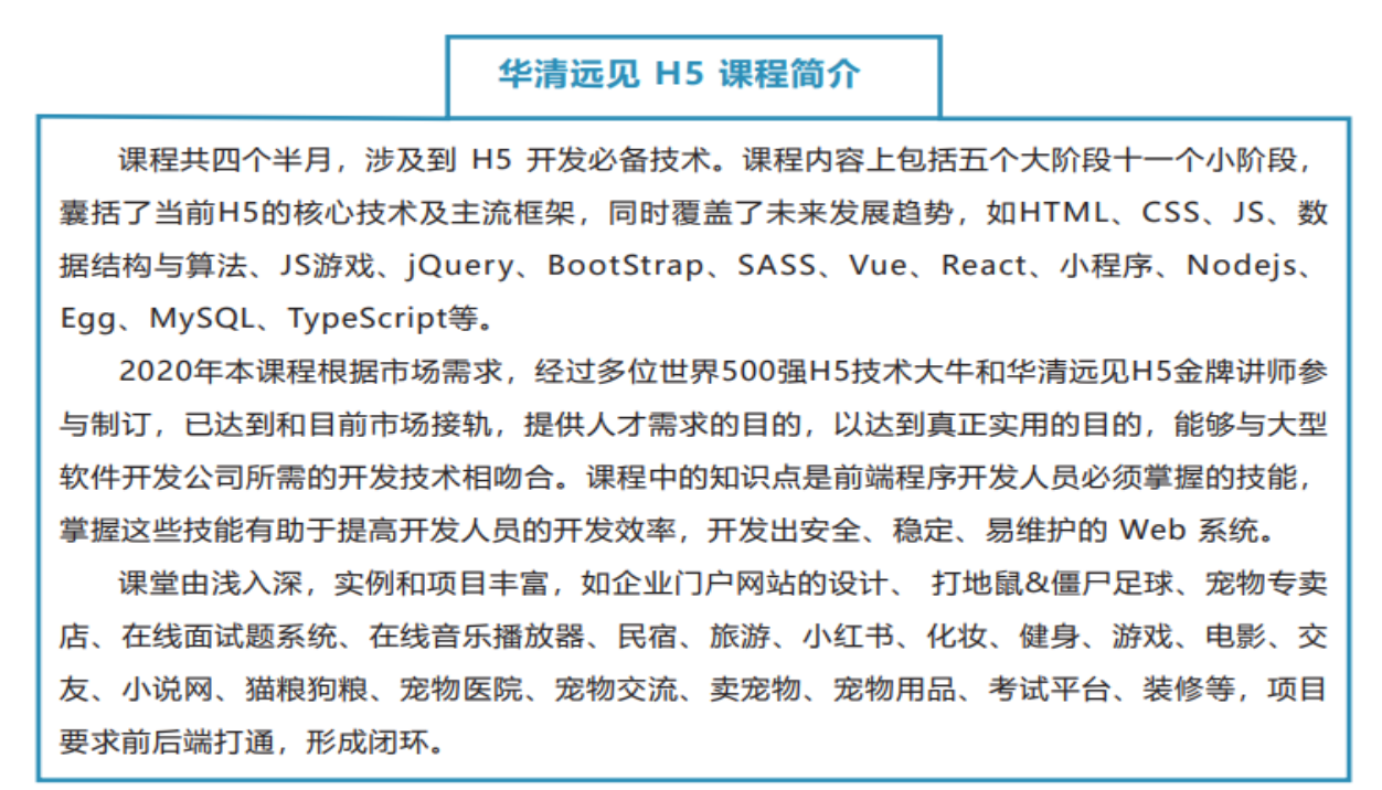 6大高薪就业课程每年2次课程升级,适应企业需求,10余个自主研发项目实训,兴趣导向。