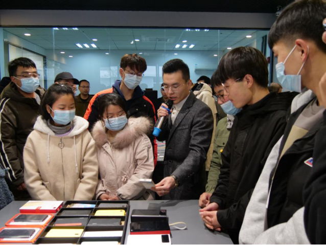 公司总经理谭启伟、国内事业部负责人赵敏对来访的师生进行了热情的接待,在公司产品体验店和展厅,赵总向大家讲解了公司产品研发设计历程以及新品设计定位,从移动电源到蓝牙耳机再到智能手环、VR眼镜、平衡车等,都一一进行了讲解。在生产车间,谭总给大家介绍了电池生产线、有线耳机生产线、移动电源生产线和数据线生产线等,并亲自操作自动贴标机,向大家展示了贴标机的使用方法,参观过程中,谭总对大家提出的问题进行一一解答。在四楼品牌管理中心,DM刘昭辉向同学们展示最近设计的磁吸音响。