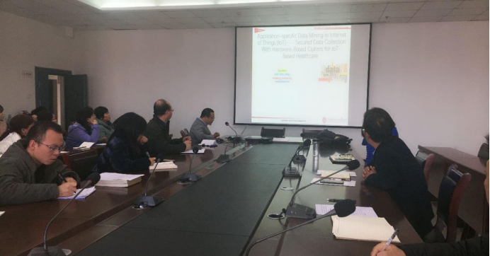 随后,海涛博士围绕自己的研究领域做了题为Application-specific Data Mining in IoT-Secured Data Collection With Hardware-Based Ciphers for IoT-Based  Heathcare的学术报告
