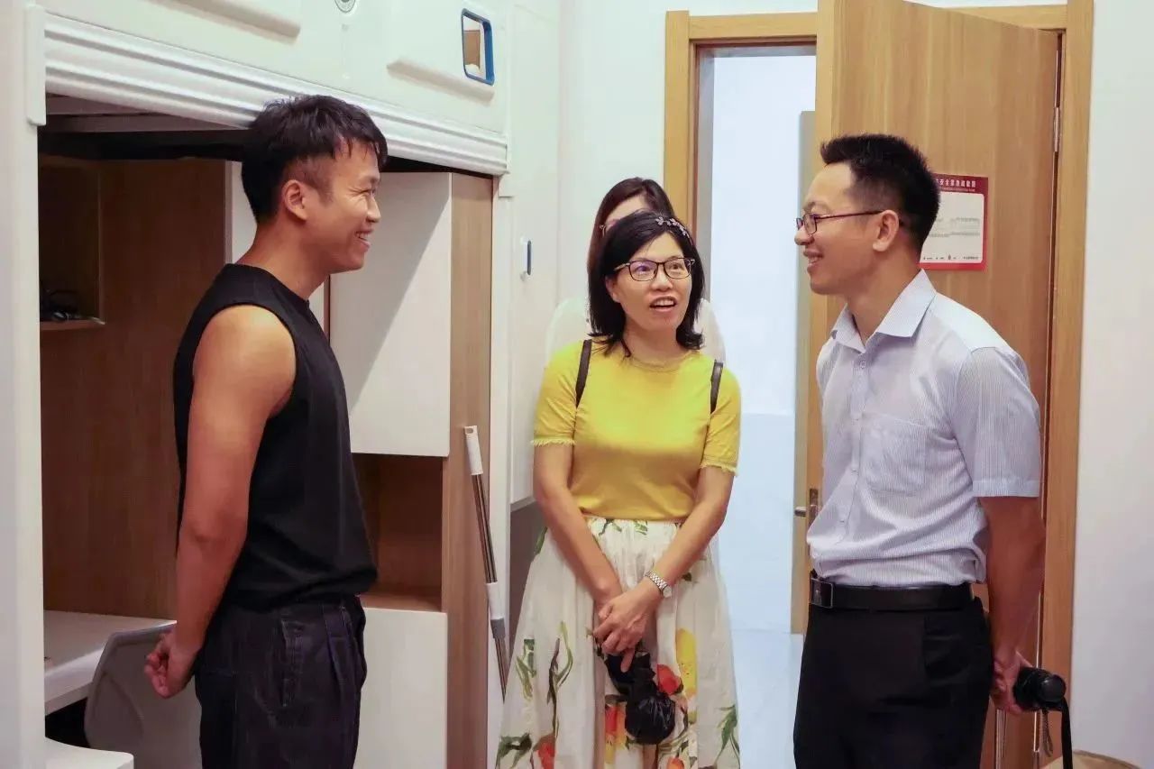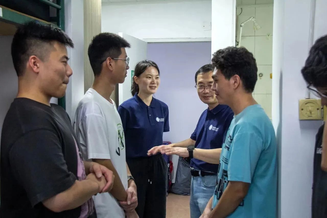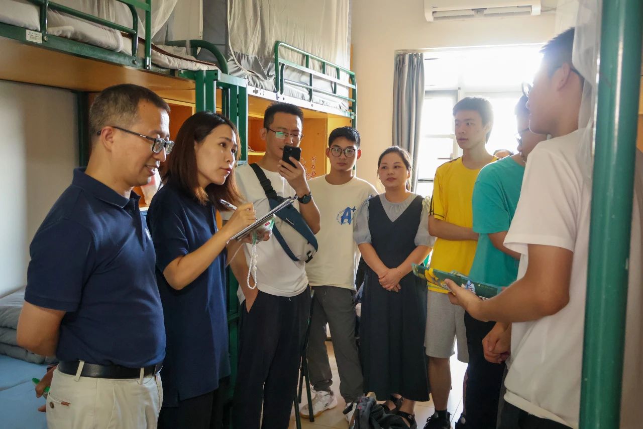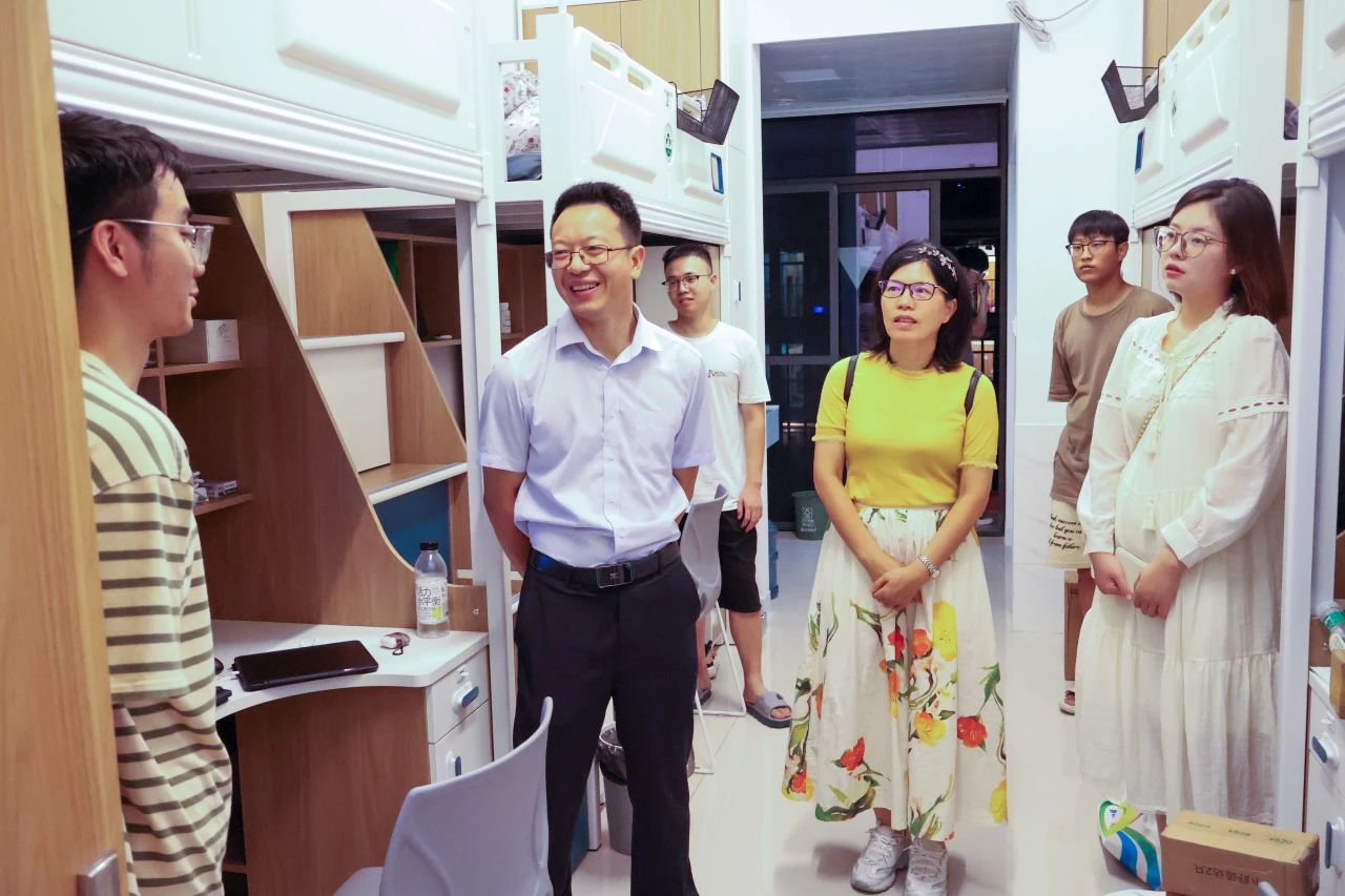 走访过程中,各位领导老师细心询问了同学们的报到情况以及生活情况,希望同学们尽快适应大学生活,尽快找到未来的学习目标。冯海林院长询问了各位同学的家乡以及来校报到的过程是否顺利。新生纷纷表示学校环境十分优美,对于即将开启的大学生活也充满了期待。冯院长鼓励新生在校期间可以多多参加学科竞赛,常与学院优秀的老师和学长学姐交流,度过充实精彩的大学生活。