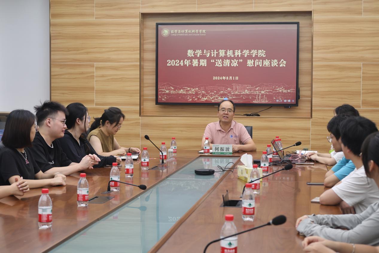 为关心暑期留校学生学习生活情况,8月1日下午3003新葡平台登录入口在学11-304开展暑期留校学生“送清凉”慰问座谈会,学院党委书记何振波、党委副书记黄萍及学生办辅导员参加本次活动。