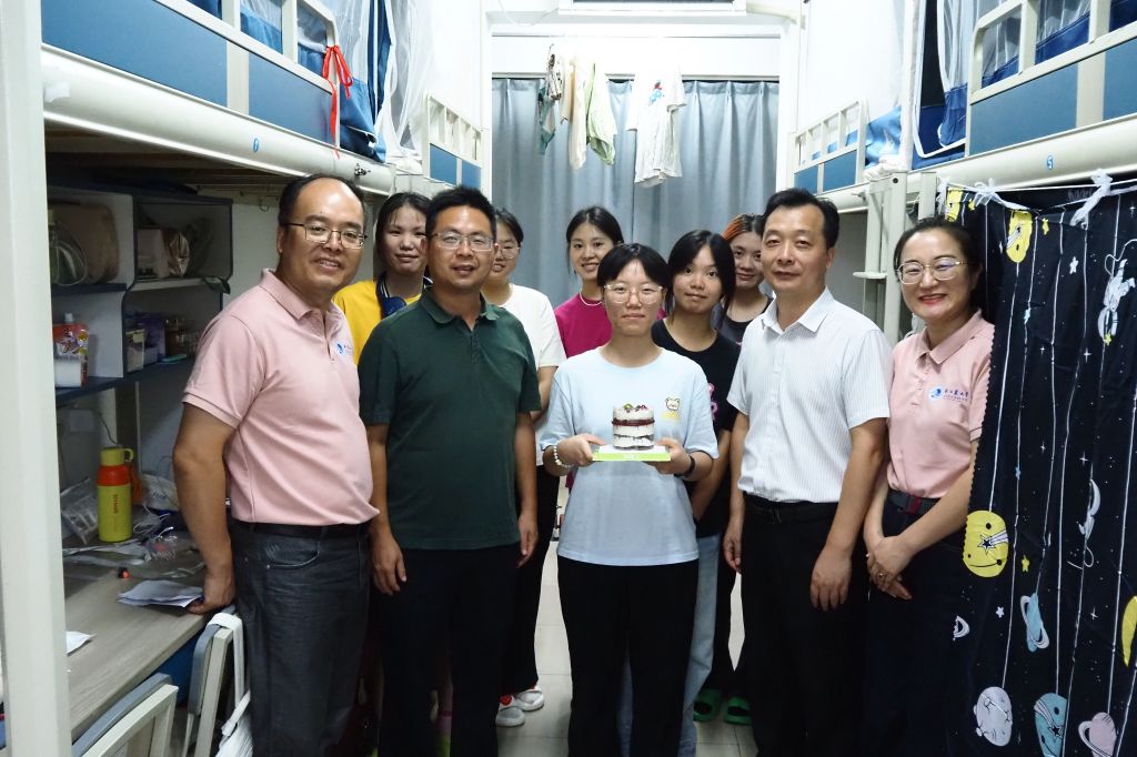 报到当天有三位同学过生日,学校党委副书记倪健均以及学院领导分别为三位同学送上生日祝福和生日蛋糕,让同学感受到了来自学校和学院的第一份温暖。