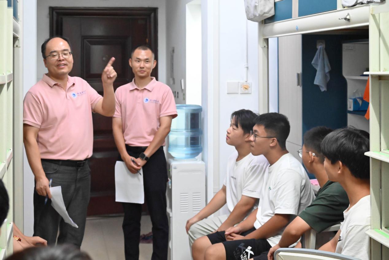 为了解3003新葡平台登录入口2024级新生入学报到、入住寝室的情况,帮助新生更快适应大学环境,融入校园生活,9月8日晚上,学院党委书记何振波、党委副书记黄萍、副院长张洪涛、胡军国在学院辅导员的陪同下深入学生寝室,与2024级新生进行亲密交流。