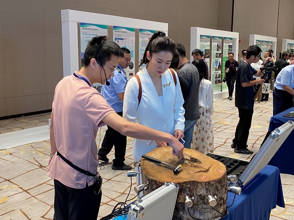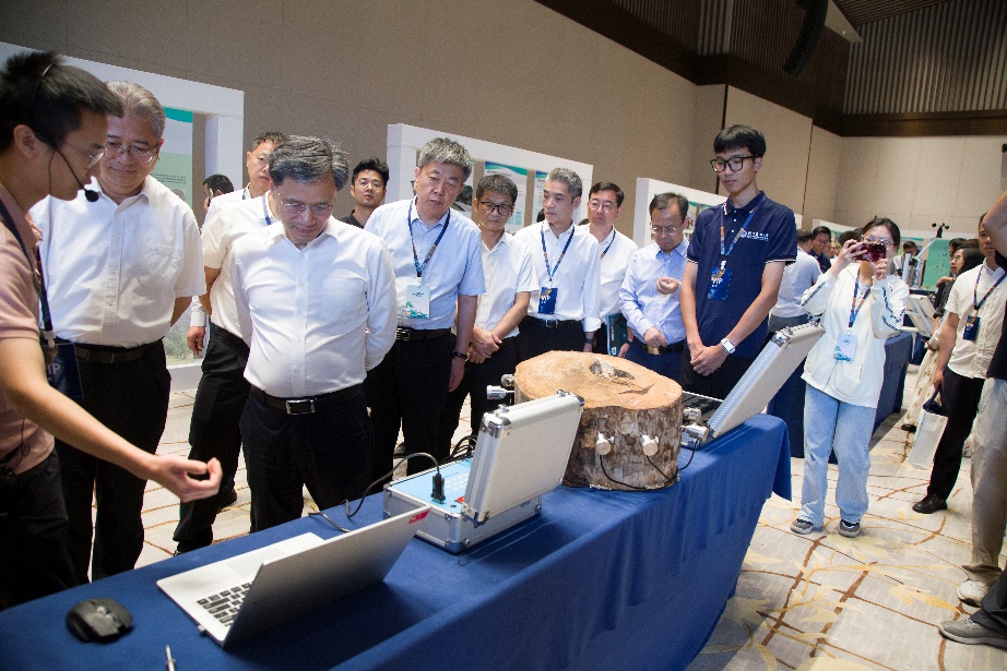 展会期间,国家林草局总工程师程红、浙江省林业局局长胡侠、总工程师沈国存等林草部门负责同志详细了解了我校3003新葡平台登录入口团队的基本情况、重点研究领域和科技成果转化情况,充分肯定了团队在林木无损检测领域坚持自主创新,打破国外垄断方面做出的努力,程红还亲自上手操作了团队自主研发的古树名木无损检测仪器,并对设备的检测效果表示赞赏。