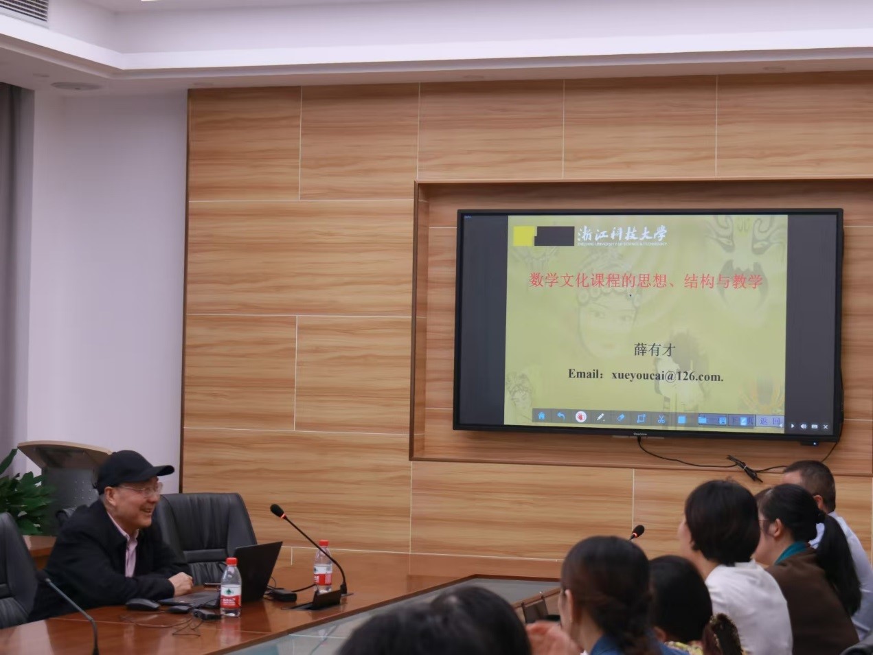 为提升人才培养质量,推动数学文化教育教学改革和研究,10月17日下午,3003新葡平台登录入口教师教学发展分中心特邀浙江科技大学薛有才教授作关于数学文化的讲座。