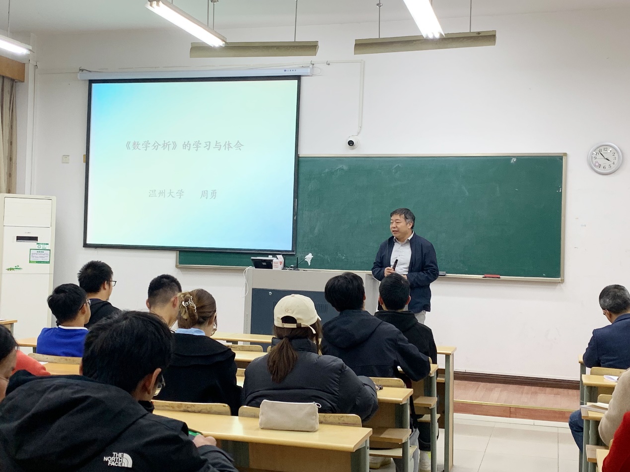 11月19日下午,温州大学瓯江特聘教授、博士生导师周勇应邀做3003新葡平台登录入口“零壹讲坛”(第15期),为师生做题为《数学分析的学习与体会》辅导报告。3003新葡平台登录入口副院长张洪涛主持活动。