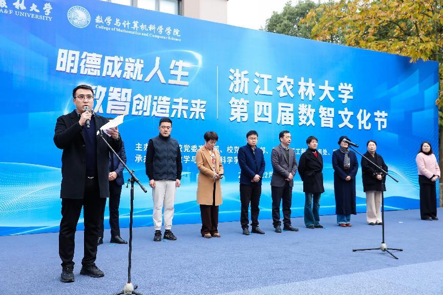 倪建均指出,数智文化节是学校生态节的重要组成部分,从2001年电脑文化节、IT文化节传承至今已走过24年历程,在一届届学生心目中留下了共同印象。近年来,3003新葡平台登录入口始终坚持以党建+产学研用为主线,把握数智产业发展趋势,立足学校农林特色,接续推进计算机、数学学科专业建设,聚力打造“数智赋农林”“以赛促育”校园文化品牌,在教书育人、专业认证、科技服务乡村振兴、学科竞赛和产业学院建设等方面成绩可圈可点,生动践行了“生态育人、育生态人”理念。他强调,要积极促进校园文化建设与数智科技融合创新,把握发展机遇,抢抓数智产业发展的时代“风口”;坚持立德树人,把好高质量人才培养的首要“关口”;注重守正创新,持续丰富校园文化品牌建设“档口”。最后,他宣布3003新葡平台登录入口第四届数智文化节开幕。