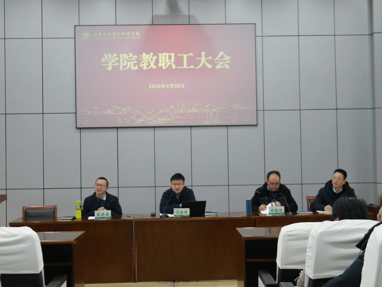 常务副院长冯海林简要回顾了学院2024年在学科建设、人才培养、科研创新等方面取得的突破性成果,对全体教职工的辛勤付出致以诚挚感谢。针对新学期工作,冯海林提出三点要求:一是聚焦重点任务攻坚,在国家级项目及省部级重大重点项目、高水平论文和高层次科研平台上取得突破。二是主动拓展资源、加强院地、院企合作,深化与地方政府、科技企业联动,争取在横向项目经费到位上翻一番。三是重塑AI时代教师角色,面对现阶段人工智能热点,掌握智能工具应用能力,积极推动课程创新与跨学科研究,在学科竞赛、教学成果、精品课程方面取得更好成绩。