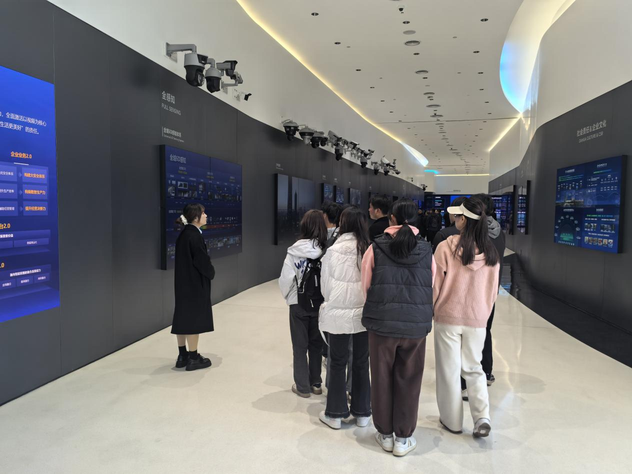 师生团队参观了大华智慧物联展厅,近距离体验了其在视频分析、智能感知、云计算等领域的最新研发成果。企业相关负责人现场演示了"大华星汉"AI大模型在智慧交通、安全生产等场景的落地应用,强调"算法+硬件+平台"的全栈能力对企业发展的关键作用。交流环节中,企业工程师结合真实项目案例,剖析了计算机视觉、边缘计算等技术在实际业务中的创新应用。