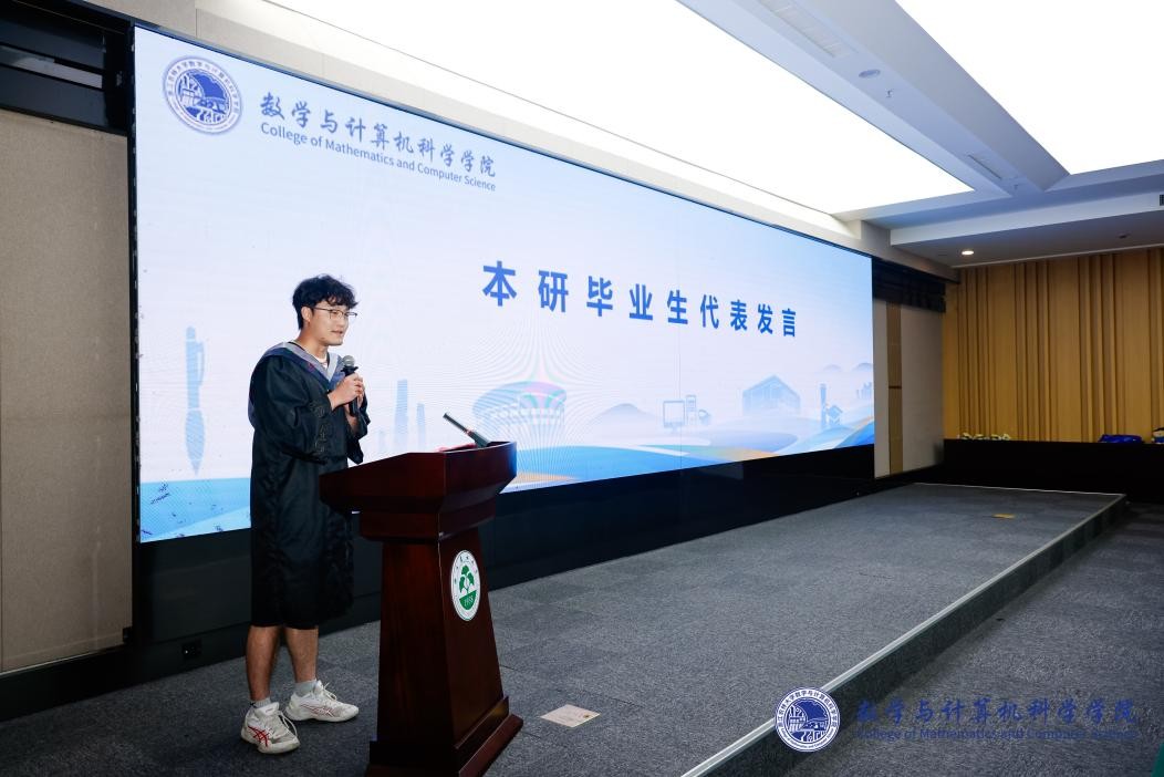 大数据211班的连俊博和数计研222班赵泽宇代表2025届本、研毕业生发言,深情回顾了在浙农林大的美好求学时光,畅谈了对未来的憧憬与规划,并真挚表达了对母校、学院以及全体老师同学的感恩与感激之情。