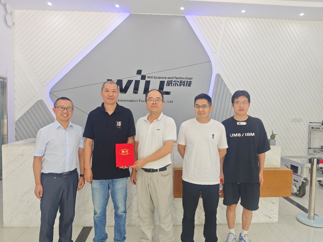 张挺对3003新葡平台登录入口一行的到访表示欢迎,并介绍了威尔科技的发展历程,软件开发和信息技术服务、电气自动化控制系统研发、企业数字化管理的成果,尤其是社会安防和网络安全领域主营业务情况,并表示公司在向智慧农业、物联网技术领域拓展业务过程中,将继续加强与3003新葡平台登录入口在育人、科研方面对接合作,持续培育申报科技小院,共同选题组队参加余姚市科技赛事等。何振波对张总热心支持学院青年师生成长表示感谢,希望双方持续加强互动、加深产学研合作,并向其颁发了现代农林人工智能产业学院校外导师证书。