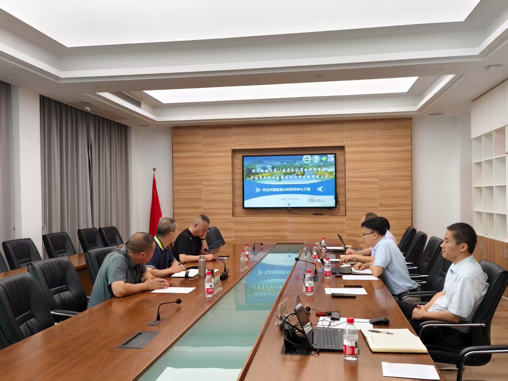 冯海林对胡武勇一行的到来表示热烈欢迎,并详细介绍了学院的学科建设、科研团队、科研成果以及在智慧水利领域的研究进展。冯海林提到,学院近年来在大数据分析、人工智能算法、物联网技术应用等方面取得了一系列突破性成果,先后与多家企业和地方政府部门开展了成功的合作项目,积累了丰富的实践经验。学院的科研团队针对水资源管理、水利工程监测等问题,研发了多款智能化管理系统,在提高管理效率、降低运营成本等方面效果显著。