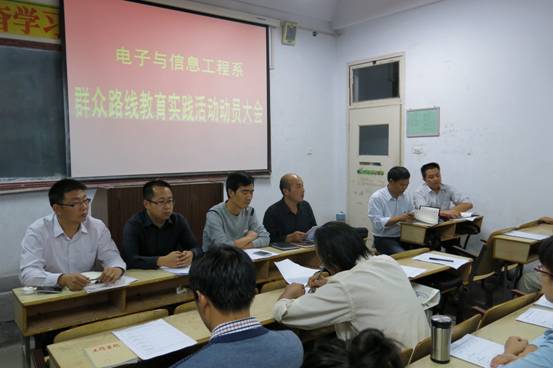 2013928晚,电子与信息工程系在江南校区1214教室召开“群众路线教育实践活动”动员大会。学校“群众路线教育实践活动”督导屈险峰主任、数学系教师刘铁,系领导及全体教职工参加会议。会议由系总支书记李红兵主持。