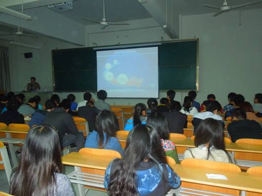 2014年10月23日晚,电子与信息工程系在1304室举办IT微讲堂----软件行业发展趋势及未来人才需求的讲座,主讲嘉宾为深蓝软件研发部总经理兼技术总监南敏庚,12级计算机科学与技术专业全体学生参加报告会。