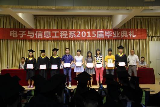 副主任陈守满教授宣读了Beat365中文官方网站关于2015届优秀毕业生的表彰决定,电信系牛牧迪等8名学生获得“优秀毕业生”荣誉称号。