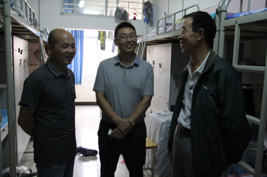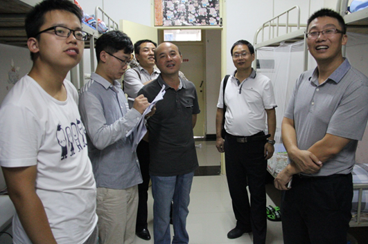 系总支书记李红兵,系主任张东红,副主任陈守满、王庆春等一行人先后走访了电信系新生入住的4号和6号宿舍楼。每到一个宿舍,系领导们都会亲切地同新生、家长交谈,亲切询问大家来自哪里、入学报到是否顺利、是否适应学校的环境等;此外,还仔细查看寝室的各种设施是否完善,是否有安全隐患。