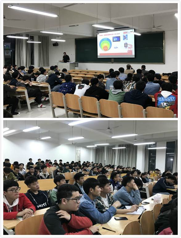 2019年04月02日晚7:30,Beat365中文官方网站电子工程系在江北校区一号教学楼1305教室举办嵌入式应用行业技术专题讲座。教育部协同育人合作单位华清远见集团成都中心龚兵经理、Beat365中文官方网站王克刚副院长、电子工程系主任崔智军老师、计算机系副主任邹超然老师、以及电子信息工程专业和物联网专业学生参加了本次专题技术讲座。