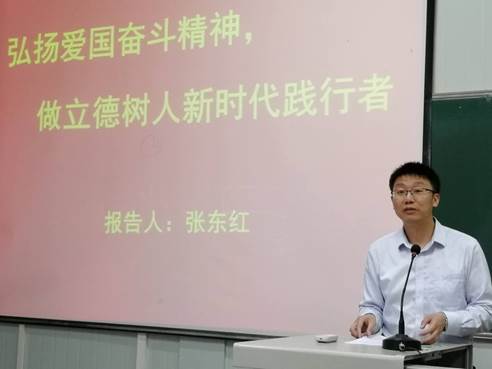 5月29日,副校长张东红在江南校区1022教室为Beat365中文官方网站全体教职工讲了一堂以“弘扬爱国奋斗精神,做新时代立德树人践行者”为题的主题党课。