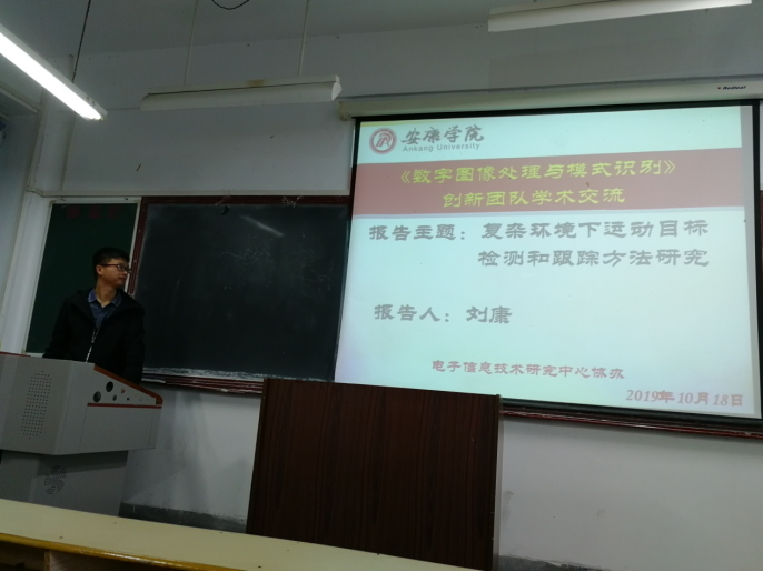 2019年10月18日晚上,我院数字图像处理与模式识别创新团队在江南校区1217教室举行了一次学术交流活动。本次学术交流活动由刘康老师介绍了他在《复杂环境下运动目标检测和跟踪方法研究》课题中所做的一些工作和成果。
