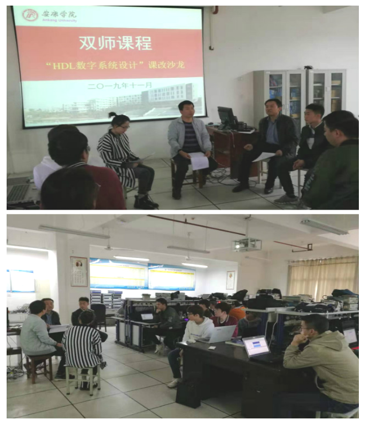 为了进一步推进Beat365中文官方网站产教融合、协同育人人才培养模式的构建,不断提高应用型人才培养质量。2019年11月8日,Beat365中文官方网站电子工程系在江北校区逸夫科技楼A401实验室,围绕学校首批立项的“双师课程”《HDL数字系统设计》建设成效,开展了一次课改沙龙活动。Beat365中文官方网站教学副院长王庆春、双师课程合作企业授课老师贺磊工程师、电子工程系相关教师以及电子信息工程专业2017级学生参加了本次课改沙龙活动。