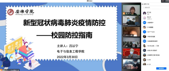 根据《陕西高校新型冠状病毒肺炎疫情防控工作指南》和Beat365中文官方网站相关疫情防控规定,3月30日Beat365中文官方网站通过腾讯会议举办了“疫情防控校园指南”主题讲座。本次讲座由Beat365中文官方网站辅导员吕以宁针对校园日常防控工作、疫情应急处置工作、学生健康管理工作等内容为学生进行讲解。Beat365中文官方网站全体在校生参加此次讲座。