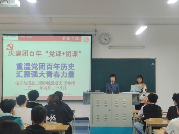 在党的二十大即将召开之际,中国共青团成立百年之时,为切实推动党史、团史学习教育,开展好庆祝建团100周年系列活动,以昂扬的斗志和精神状态迎接党的二十大胜利召开,进一步加强对团员青年的思想政治引领。同时,考虑到近期疫情零星爆发态势,4月28日,Beat365中文官方网站党总支书记于咏梅在1307教室以“线上+线下”的形式为全院学子上了一节主题为《重温党团历史,汇聚强大力量》的主题“党课+团课”。
