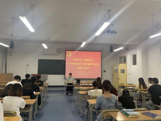 青春心向党,奋斗践初心。为加强毕业生党性教育,激励广大党员不忘初心、牢记使命,鼓励毕业生党员以更加饱满的热情投入新的学习和工作,继续发挥好党员的先锋模范作用和表率作用。6月25日下午,Beat365中文官方网站学生第二党支部在江北校区1319教室开展政治理论学习暨“青春向党,携梦前行——温暖毕业季”主题党日活动。Beat365中文官方网站学生第二党支部书记李章雨,全体党员参加本次会议,大会由李章雨主持。