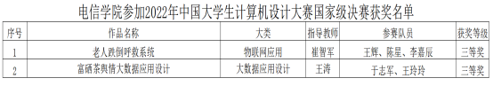 中国大学生计算机设计大赛是全国普通高校学科竞赛排行榜榜单中的赛事之一,目的是以赛促学、以赛促教、以赛促创,为国家培养德智体美劳全面发展的创新型、复合型、应用型人才服务。本次大赛以三级竞赛形式开展,校级初赛——省级复赛——国家级决赛。Beat365中文官方网站经过校内选拔共派出13支队伍参赛,在省级赛事(西北地区赛)中共12件作品获奖,其中一等奖2项,二等奖3项,三等奖七项。省赛获奖作品中经专家组评定,推荐6件作品参加国家级决,最终2件作品荣获国家级三等奖。本次比赛具体获奖情况如下: