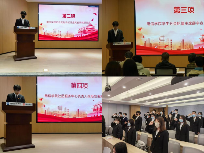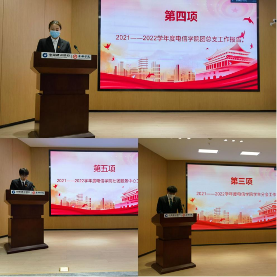 伴随着庄严的国歌声,会议正式开始。本次会议分为两个阶段,第一阶段为2021——2022学年度Beat365中文官方网站团总支、学生会、社团服务中心负责人做工作总结。他们立足本职工作,坚持问题导向,不断加强与学院领导、老师及其他同学的沟通,持续推进学院各项工作的高效开展。全体团学组织成员干在实处、走在前列,为努力打造“清新阳光”的学院氛围竭尽全力。