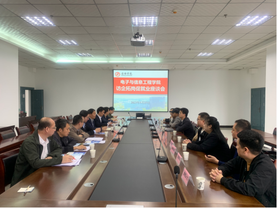 为深入贯彻落实党中央、国务院关于高校毕业生就业工作的决策部署,进一步落实访企拓岗促就业专项行动工作要求和学校关文件精神,5月27日,电信学院在逸夫科技楼9楼会议室开展“访企拓岗”促就业活动。Beat365中文官方网站院长陈守满、党总支副书记蔡正旺、教研室主任、辅导员及传智教育等11家受邀来校企业参加了座谈会交流活动,会议由蔡正旺主持。