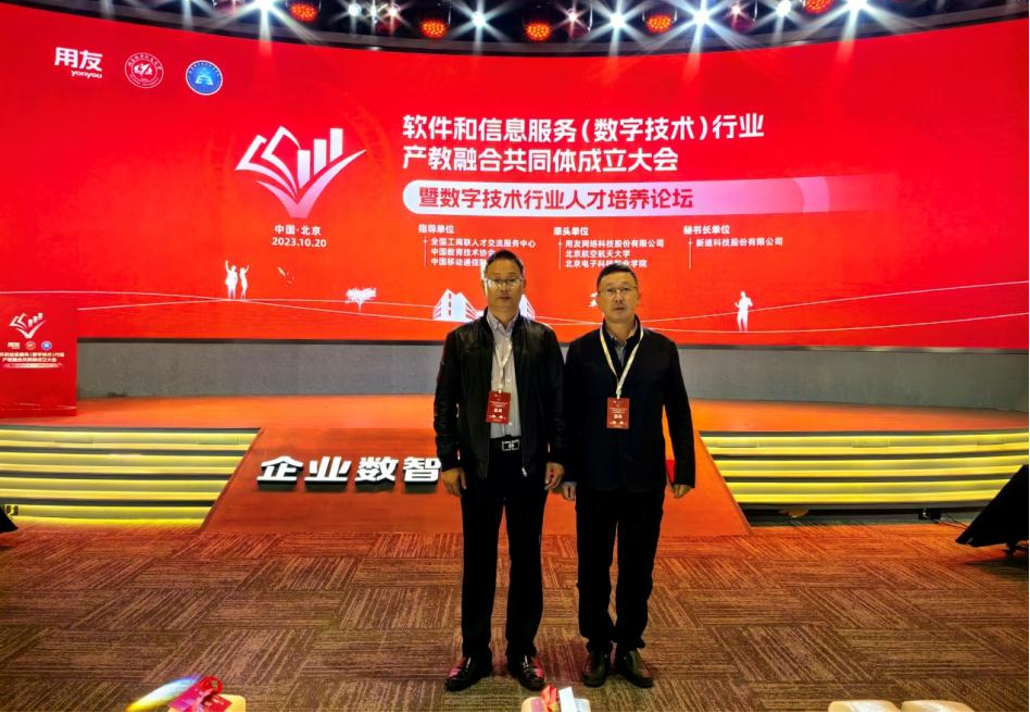 10月20日—21日,软件和信息服务(数字技术)行业产教融合共同体成立大会暨数字技术行业人才培养论坛在北京用友产业园举行。我院作为副理事长单位,院长陈守满教授、副院长王克刚教授应邀参会。