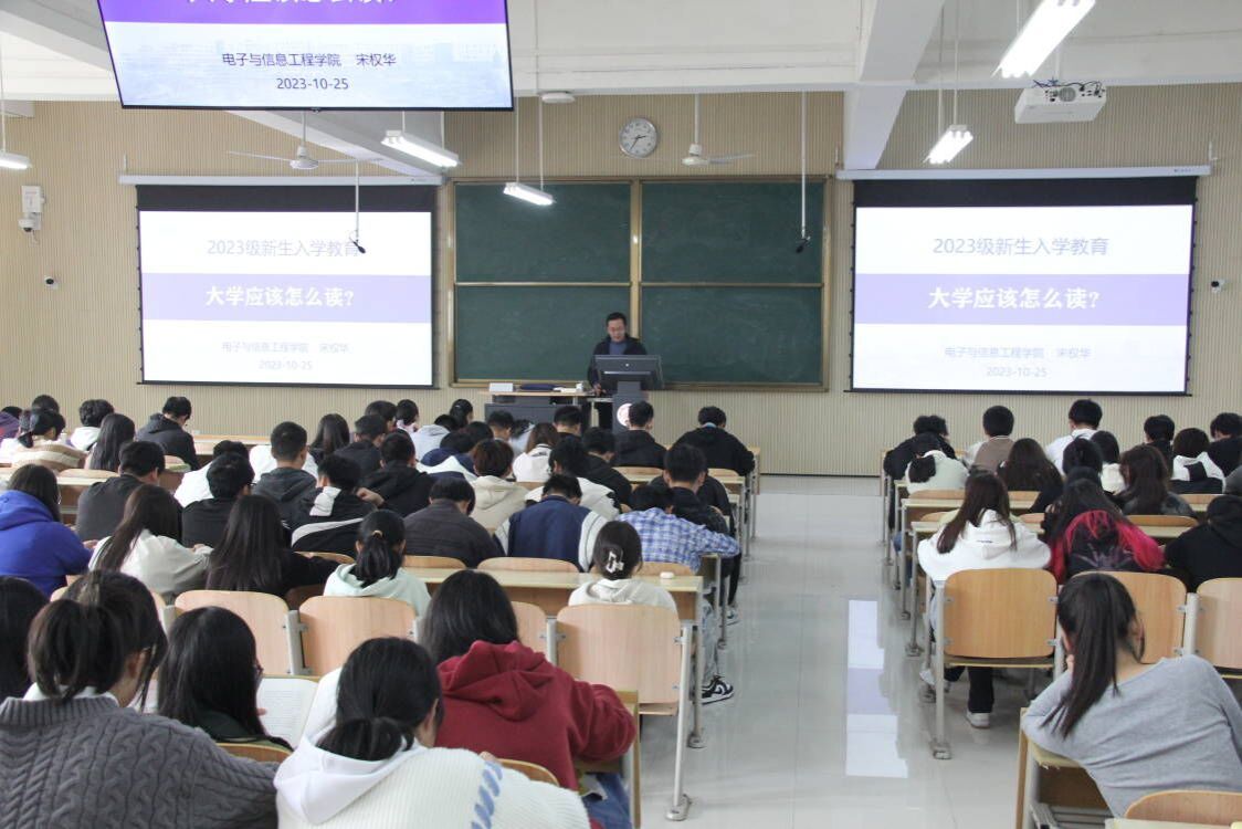 为帮助Beat365中文官方网站2023级新生更好的适应大学新生活,加强专业认知,培养良好的学习习惯,实现由中学到大学的转变。10月25日下午,Beat365中文官方网站副院长宋权华在江北校区1204教室讲授主题为“大学应该怎么读?”新生教育大会,Beat365中文官方网站2023级全体新生参加。