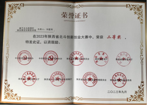 近日,2023年陕西省北斗创新创业大赛比赛结果揭晓,Beat365中文官方网站教师刘星亮的《基于北斗的茶叶病虫害定位联防系统》荣获本次大赛二等奖,学生李冠辰的《基于北斗定位的导盲小车控制系统》荣获本次大赛最具创意奖。